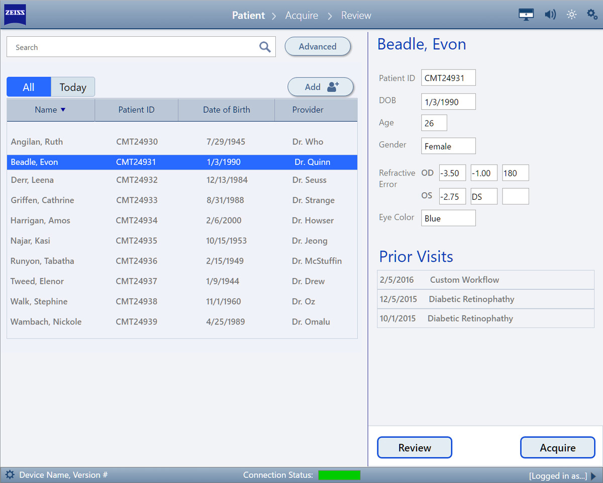 UX Designed in Axure for working prototype for User Experience. Click on the icon above to view and click on certain buttons in the PDF sample. Click on: Today | ALL | Add| Advanced | Scan Type | Provider | (Patients: Ruth or Evon)| Patient.